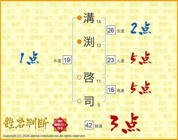 溝渕啓司さんの天運は26画の2点!