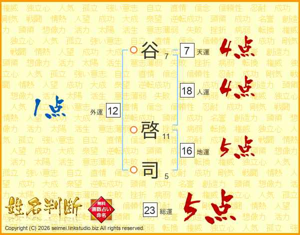 谷啓司さんの総運は23画の5点!