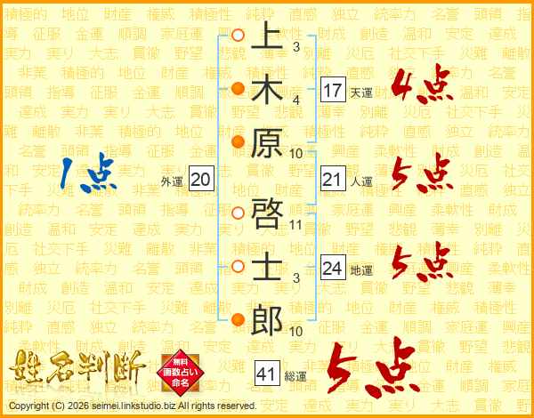 上木原啓士郎さんの総運は41画の5点!