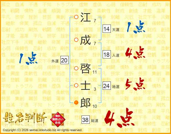 江(7画)成(7画) 啓(11画)士(3画)郎(10画)