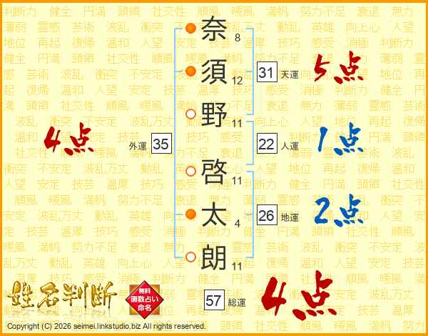 奈須野啓太朗さんの総運は57画の4点!