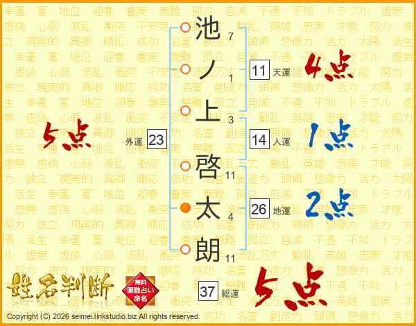 池ノ上啓太朗さんの総運は37画の5点!