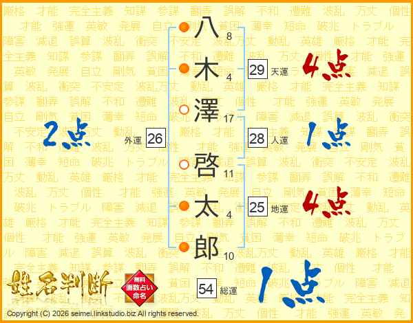 八木澤啓太郎さんの天運は29画の4点!