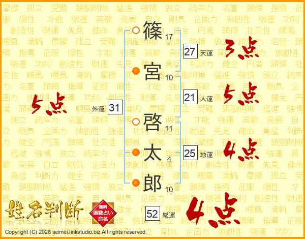 篠宮啓太郎さんの総運は52画の4点!