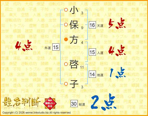 小保方啓子さんの外運は15画の4点!