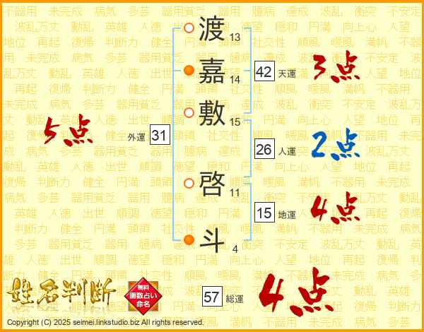 渡嘉敷啓斗さんの総運は57画の4点!