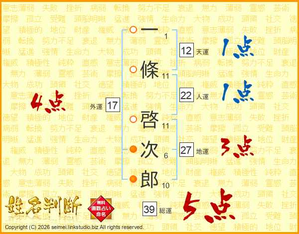 一條啓次郎さんの総運は39画の5点!