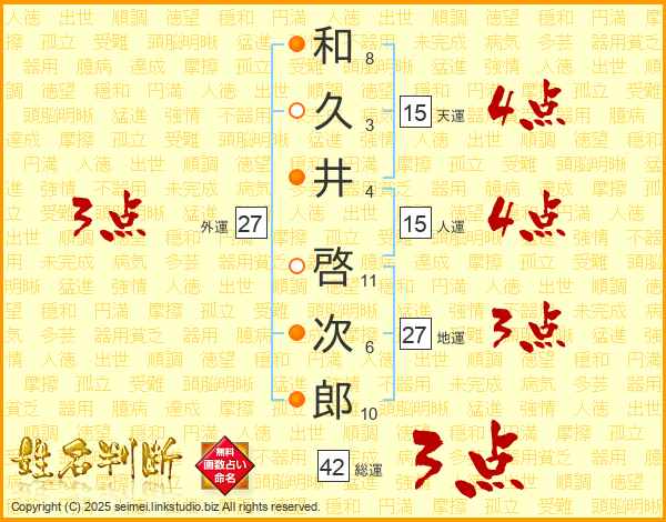 和(8画)久(3画)井(4画) 啓(11画)次(6画)郎(10画)