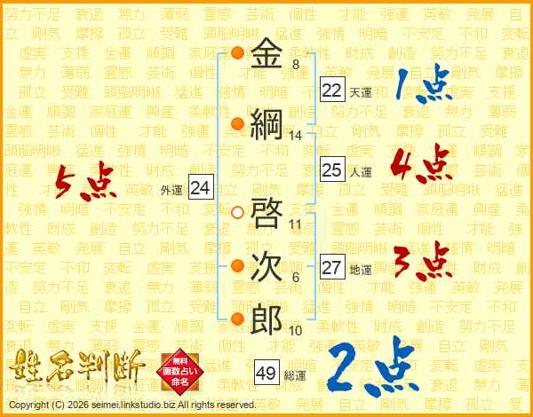 金綱啓次郎さんの人運は25画の4点!