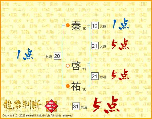 秦啓祐さんの総運は31画の5点!