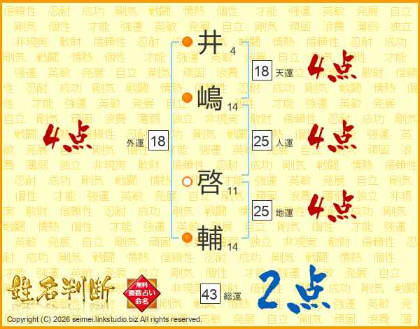 井(4画)嶋(14画) 啓(11画)輔(14画)