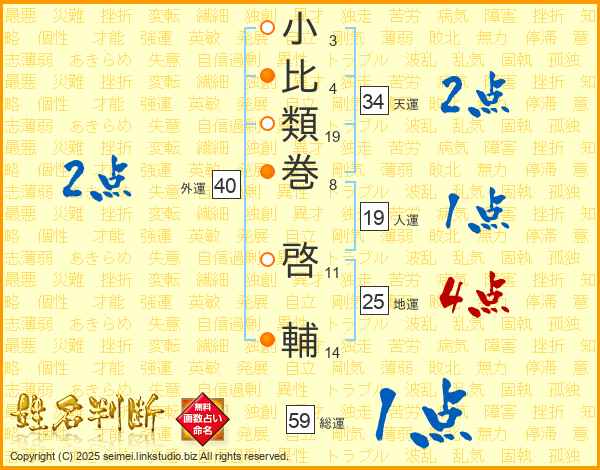 小(3画)比(4画)類(19画)巻(8画) 啓(11画)輔(14画)