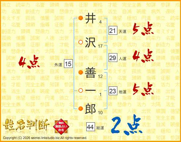 井(4画)沢(17画) 善(12画)一(1画)郎(10画)