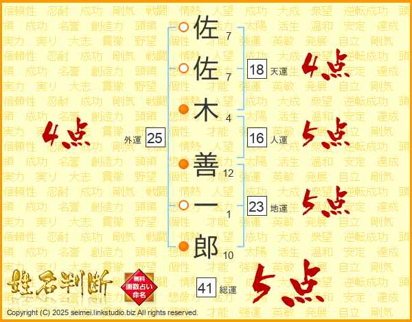 佐(7画)佐(7画)木(4画) 善(12画)一(1画)郎(10画)