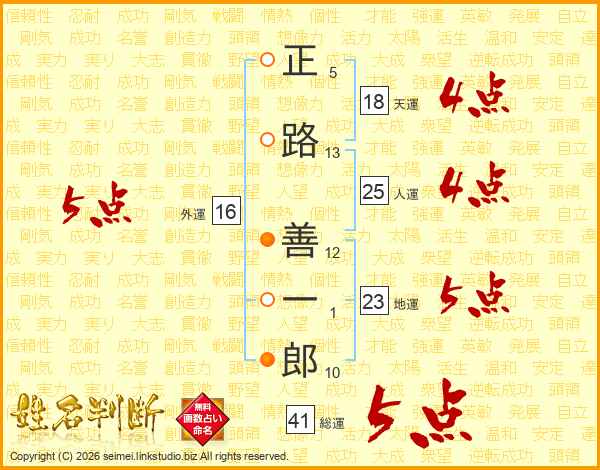 正路善一郎さんの総運は41画の5点!