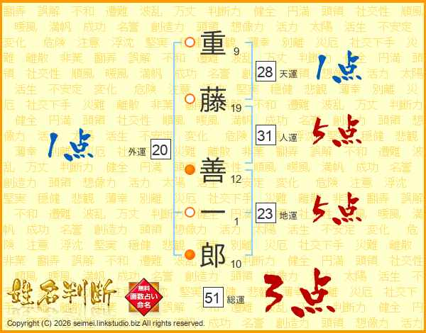 重藤善一郎さんの人運は31画の5点!