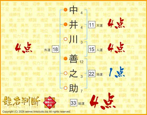 中(4画)井(4画)川(3画) 善(12画)之(3画)助(7画)
