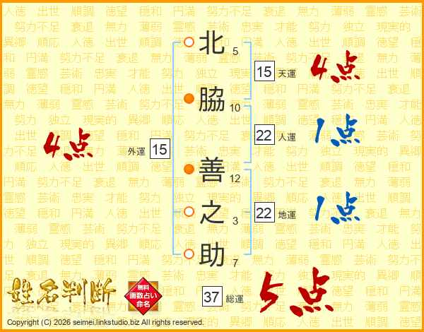 北脇善之助さんの総運は37画の5点!