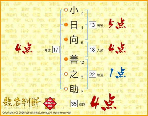 小日向善之助さんの外運は17画の4点!
