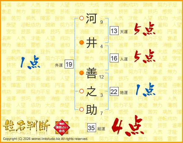 河(9画)井(4画) 善(12画)之(3画)助(7画)