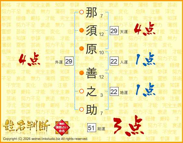 那須原善之助さんの天運は29画の4点!