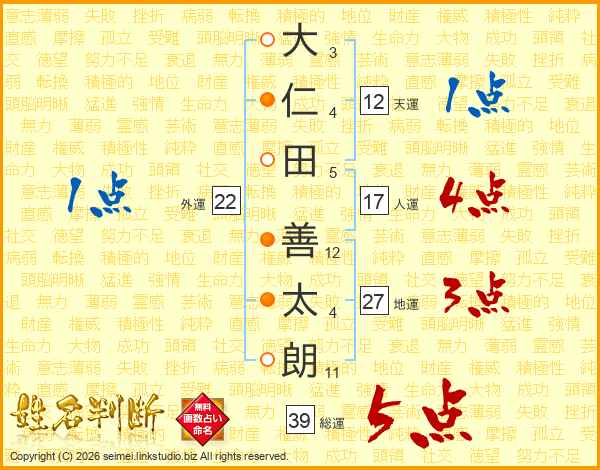 大仁田善太朗さんの総運は39画の5点!