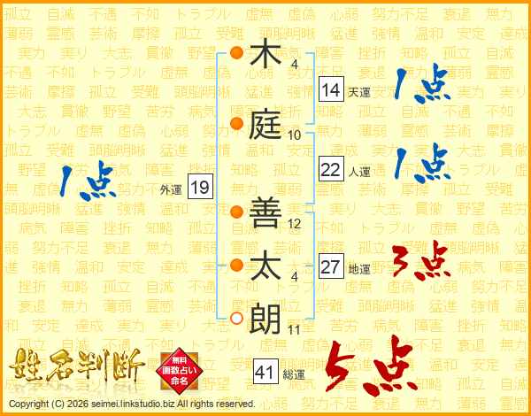 木庭善太朗さんの天運は14画の1点!