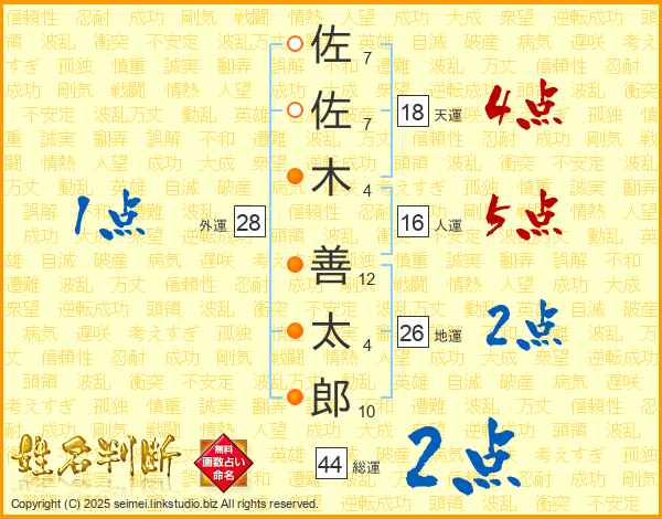 佐佐木善太郎さんの総運は44画の2点!