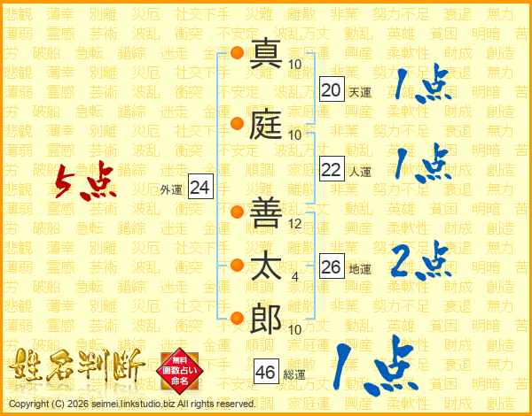 真庭善太郎さんの総運は46画の1点!