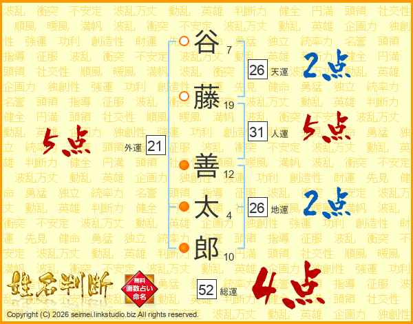 谷藤善太郎さんの総運は52画の4点!