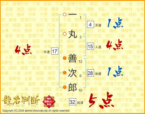 一(1画)丸(3画) 善(12画)次(6画)郎(10画)