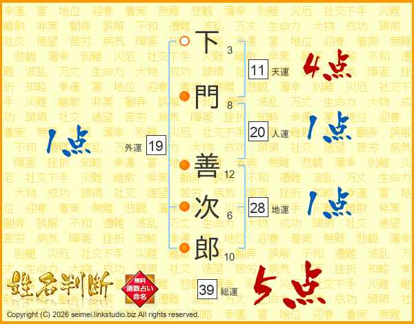 下門善次郎さんの総運は39画の5点!
