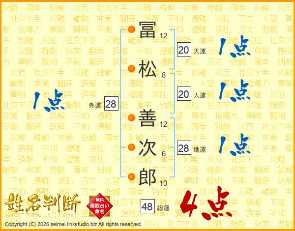 冨松善次郎さんの総運は48画の4点!