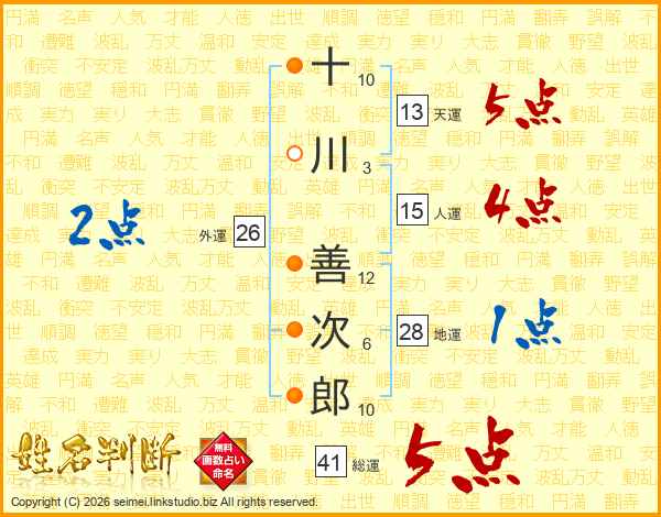 十川善次郎さんの総運は41画の5点!