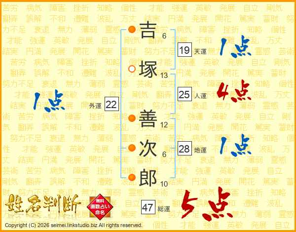 吉塚善次郎さんの総運は47画の5点!