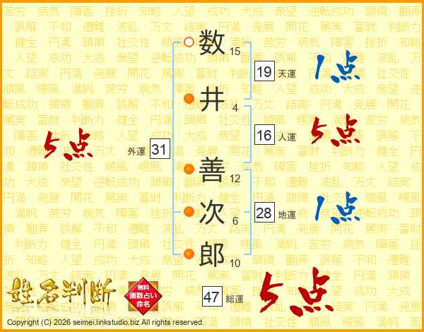 数井善次郎さんの総運は47画の5点!
