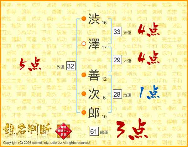 渋澤善次郎さんの総運は61画の3点!