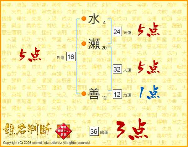 水瀬善さんの総運は36画の3点!