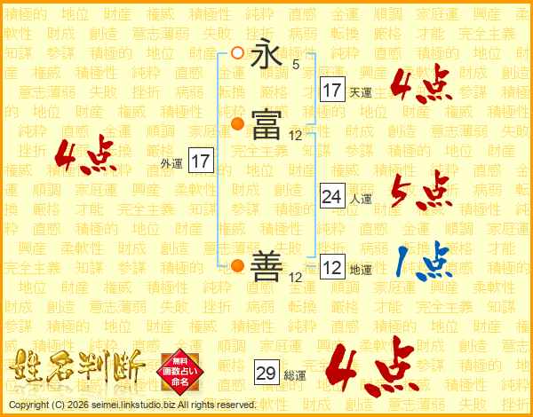 永富善さんの天運は17画の4点!