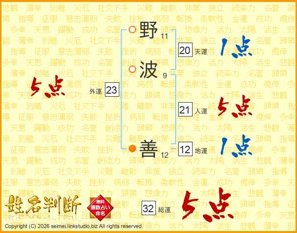 野波善さんの総運は32画の5点!