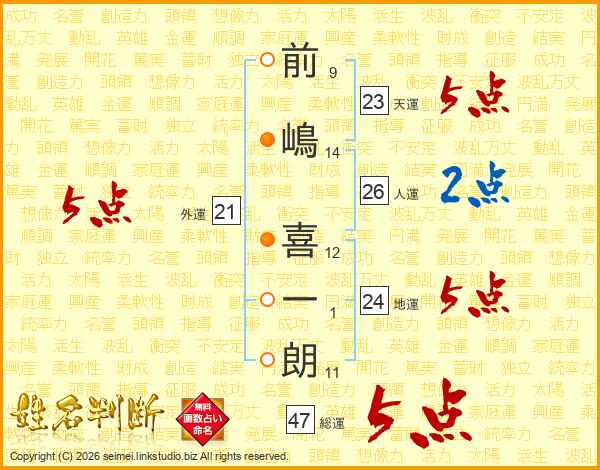 前嶋喜一朗さんの総運は47画の5点!