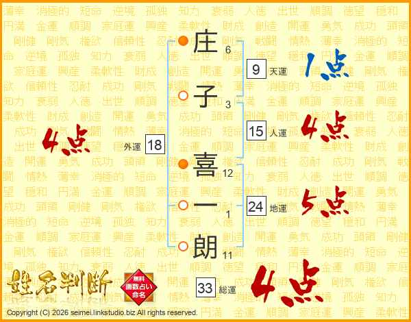 庄子喜一朗さんの総運は33画の4点!