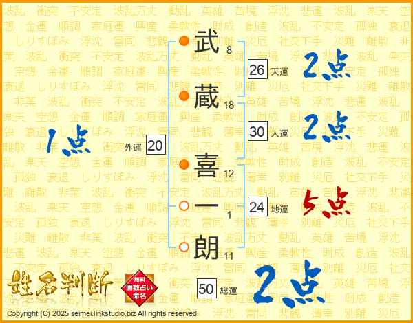 武蔵喜一朗さんの天運は26画の2点!