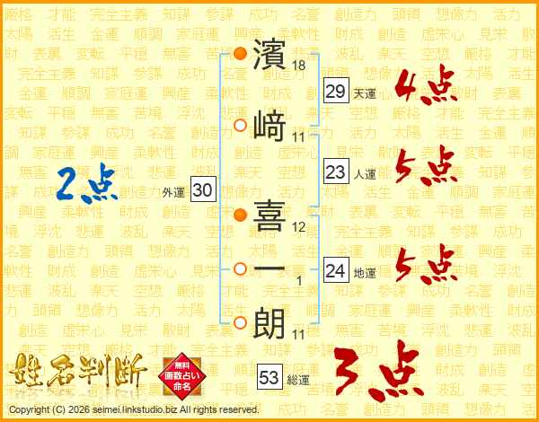 濱﨑喜一朗さんの総運は53画の3点!