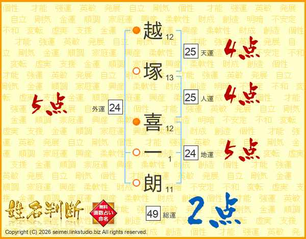 越塚喜一朗さんの天運は25画の4点!