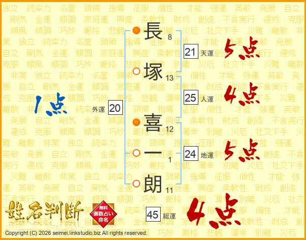 長塚喜一朗さんの総運は45画の4点!