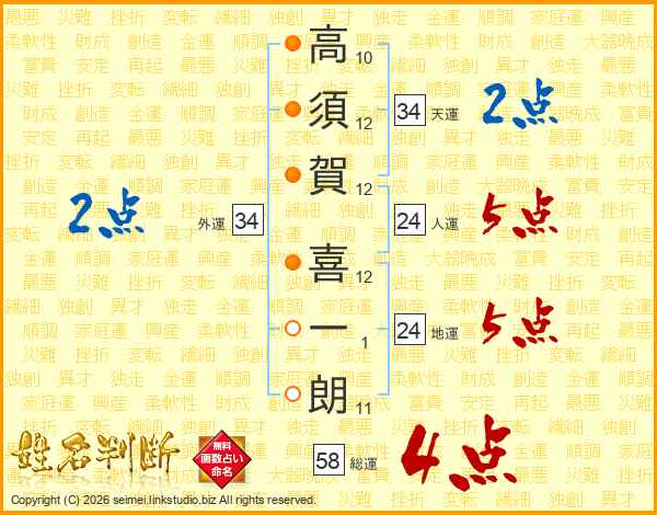 高須賀喜一朗さんの総運は58画の4点!