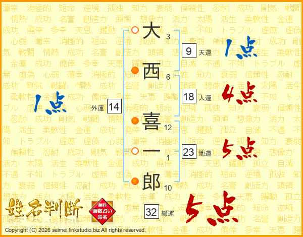 大西喜一郎さんの総運は32画の5点!