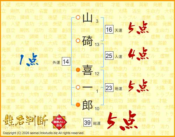 山碕喜一郎さんの総運は39画の5点!