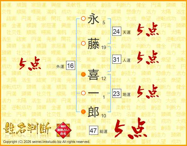 永藤喜一郎さんの総運は47画の5点!